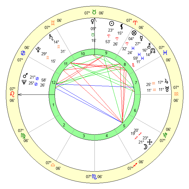 | Sun | 23 Aries 54 | 25 Aries 0 | 10 Leo 29 |