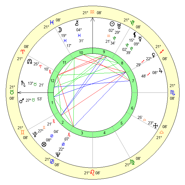 | Moon | 19 Pisces 21 | 24 Scorpio 1 | 8 Taurus 33 |