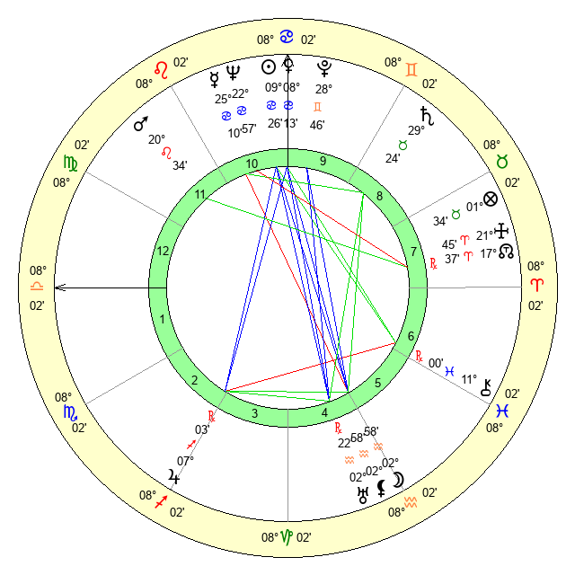 | Neptune | 22 Cancer 58 | 2 Aries 10 | 26 Cancer 0 |