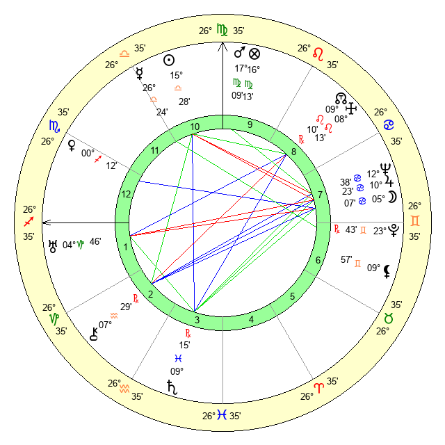| Mars | 17 Virgo 10 | 11 Scorpio 50 | 0 Sagittarius 11 |