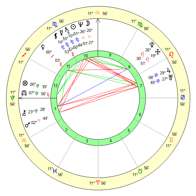 | Saturn | 11 Scorpio 18 | 26 Pisces 0 | 19 Scorpio 7 |