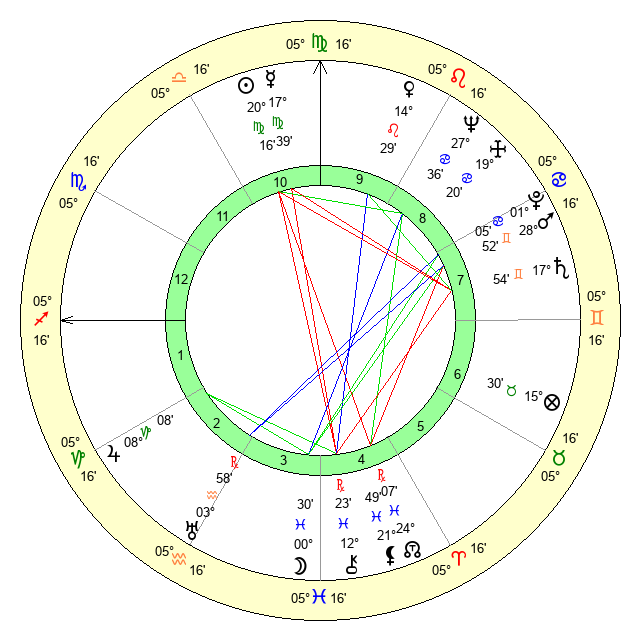 | Sun | 20 Virgo 16 | 21 Virgo 9 | 12 Capricorn 30 |