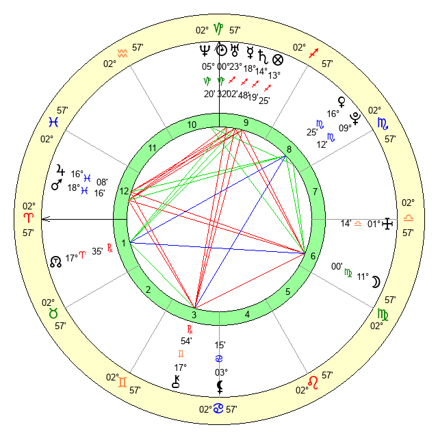 | Moon | 10 Virgo 59 | 28 Virgo 57 | 11 Aquarius 12 |
