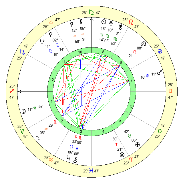 | Mercury | 12 Libra 59 | 13 Virgo 15 | 10 Scorpio 17 |