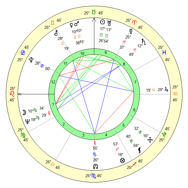 | Moon | 10 Virgo 39 | 4 Libra 51 | 17 Scorpio 59 |