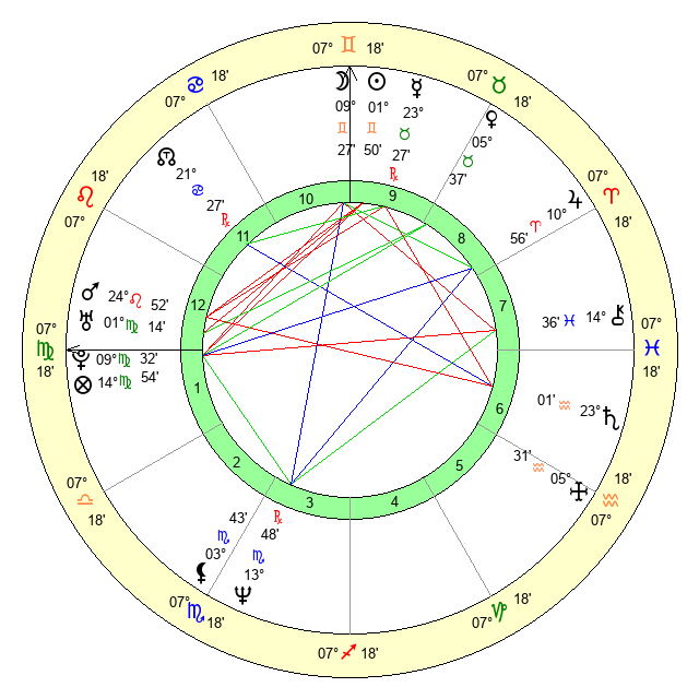 | Moon | 9 Gemini 27 | 14 Aries 51 | 18 Virgo 8 |