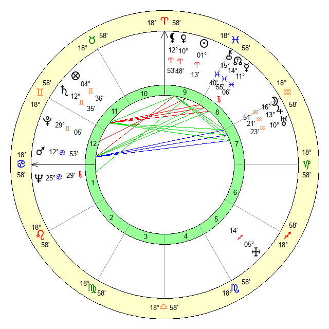 | Mars | 12 Cancer 54 | 20 Cancer 51 | 9 Virgo 9 |