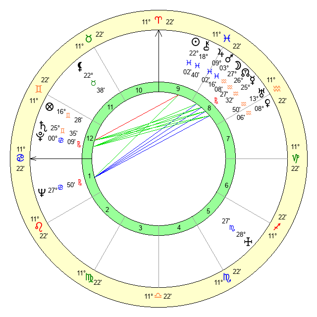 | Neptune | 27 Cancer 50 | 29 Pisces 22 | 29 Cancer 22 |