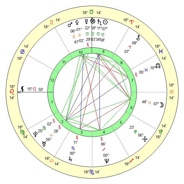| Moon | 7 Aquarius 49 | 21 Taurus 28 | 14 Aquarius 37 |