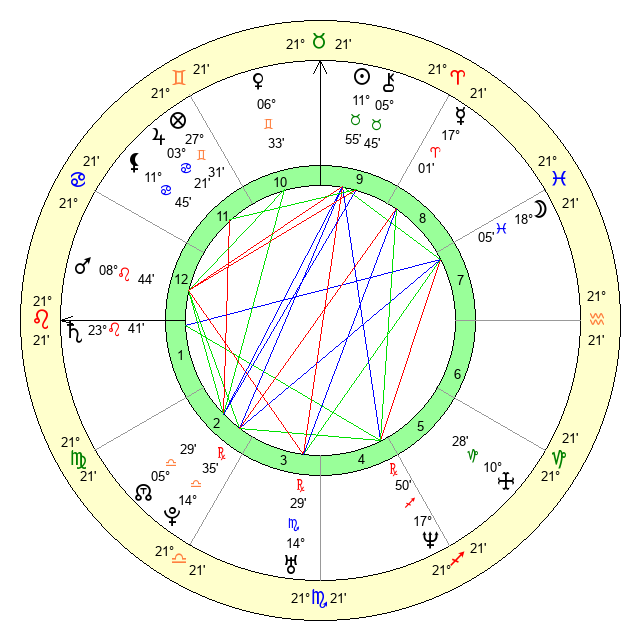 | Venus | 6 Gemini 34 | 1 Aries 9 | 2 Leo 53 |