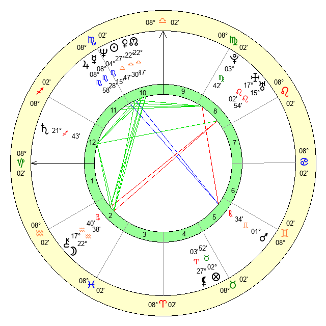 | Venus | 22 Libra 31 | 9 Libra 43 | 16 Capricorn 39 |