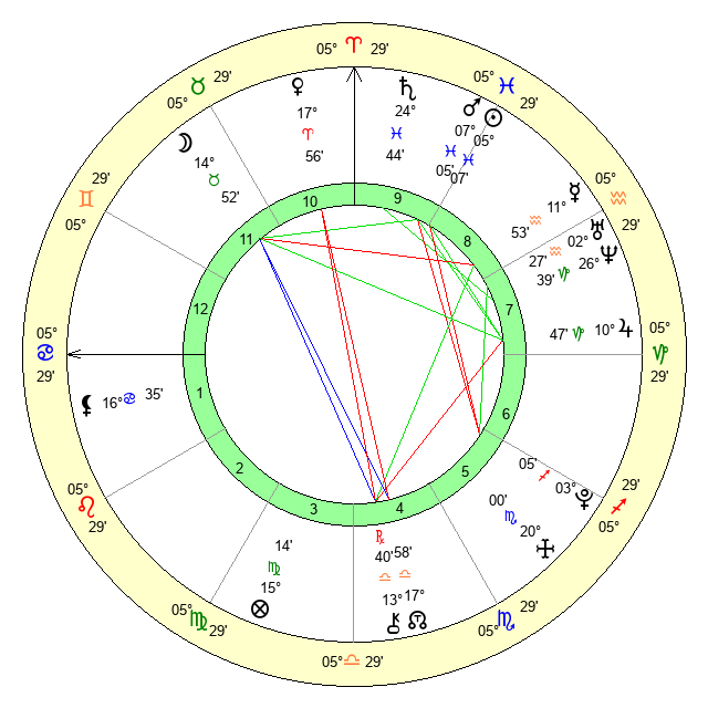 | Mars | 7 Pisces 5 | 17 Cancer 1 | 29 Pisces 52 |