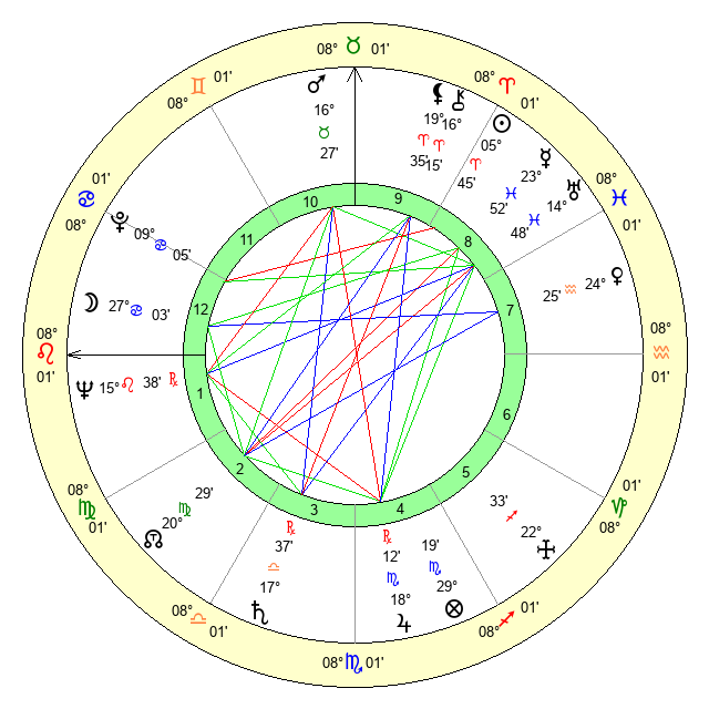 | Sun | 5 Aries 45 | 7 Aries 2 | 14 Cancer 18 |