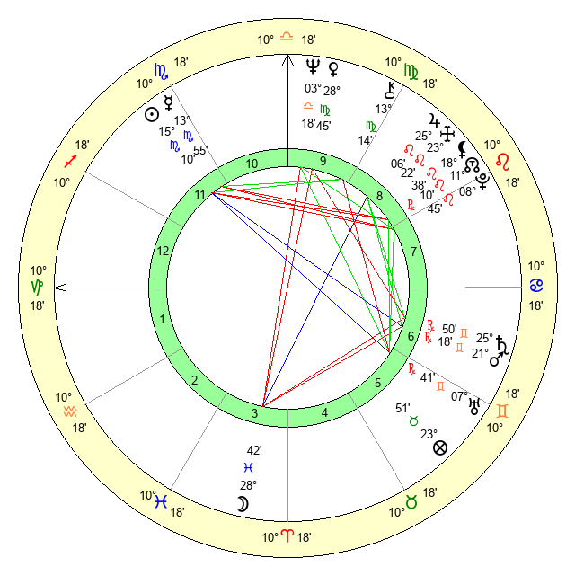 | Neptune | 3 Libra 20 | 29 Pisces 38 | 4 Libra 6 |