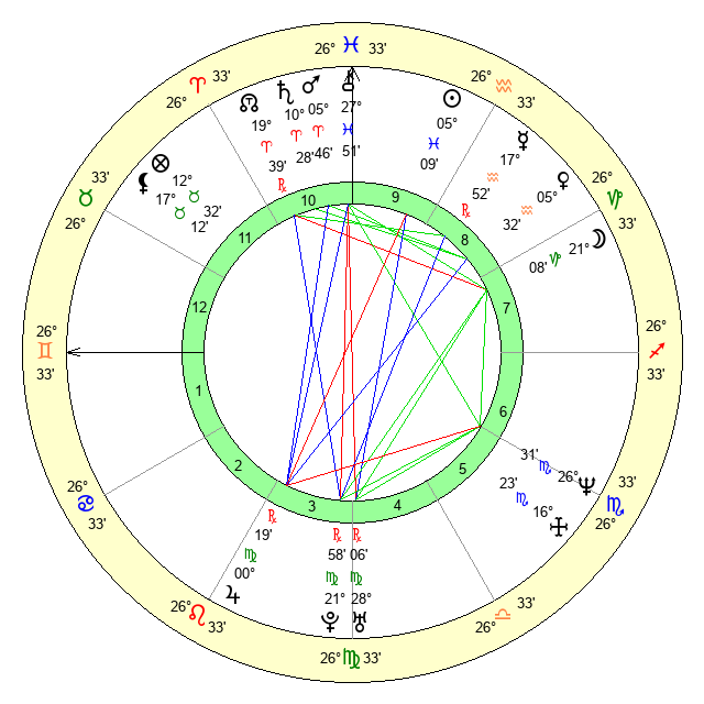 | Mercury | 17 Aquarius 52 | 18 Pisces 51 | 27 Aries 59 |