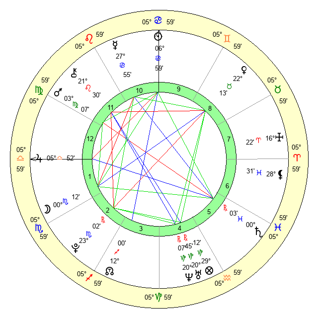 | Mercury | 27 Cancer 55 | 2 Leo 25 | 19 Cancer 19 |