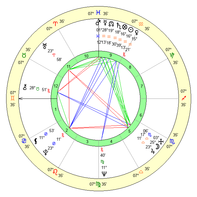 | Moon | 25 Libra 15 | 22 Taurus 2 | 4 Pisces 55 |