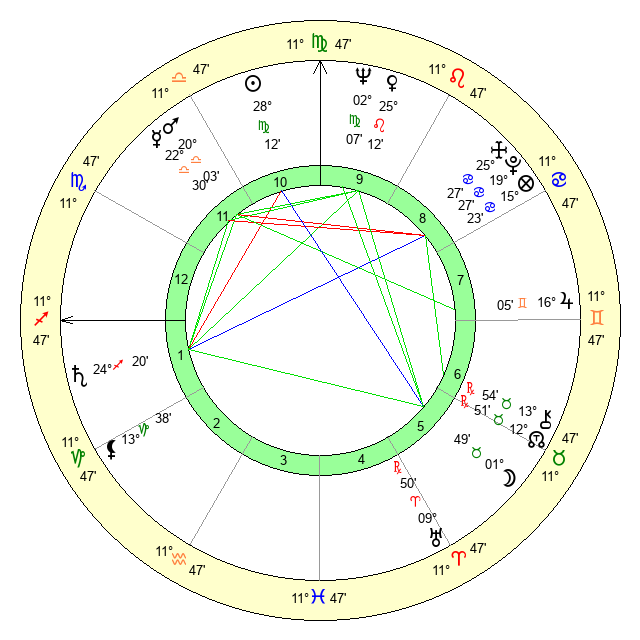 | Neptune | 2 Virgo 8 | 0 Aries 47 | 3 Virgo 28 |
