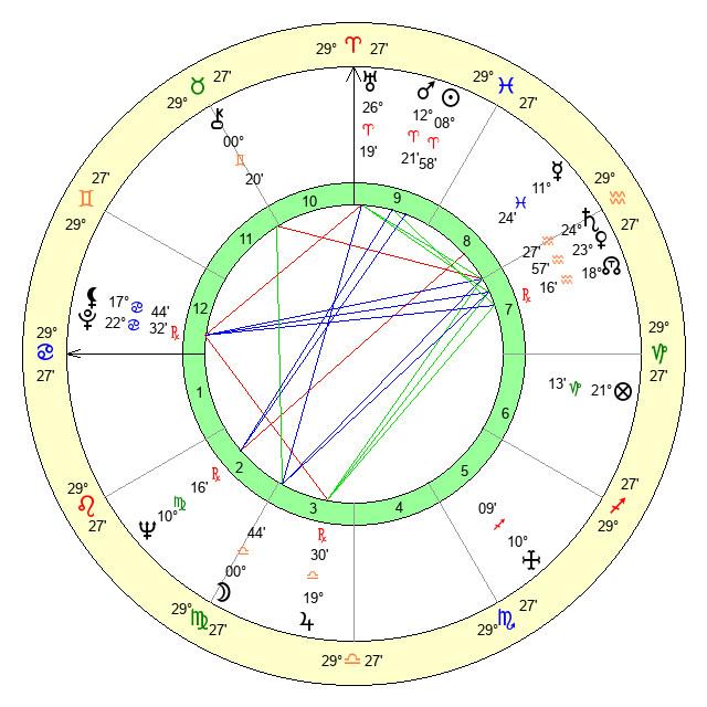 | Mars | 12 Aries 21 | 23 Cancer 5 | 18 Gemini 43 |