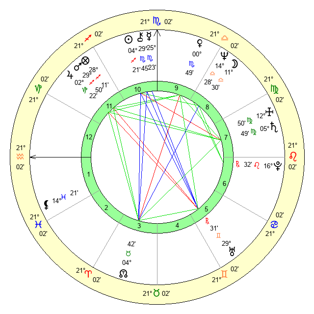 | Saturn | 6 Virgo 18 | 25 Pisces 3 | 4 Virgo 8 |