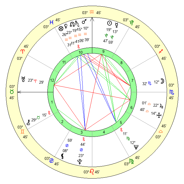 | Neptune | 12 Virgo 11 | 29 Pisces 38 | 9 Virgo 58 |