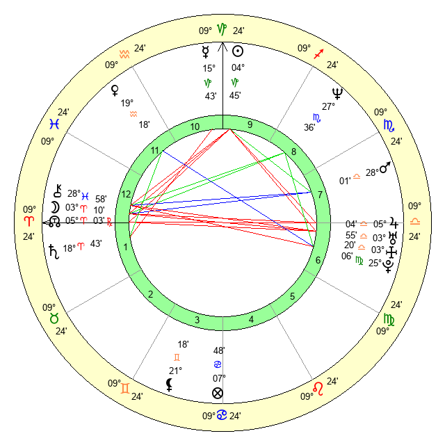 | Pluto | 25 Virgo 6 | 0 Aquarius 53 | 24 Virgo 21 |
