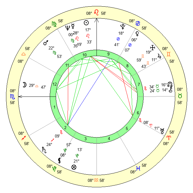 | Moon | 29 Libra 58 | 5 Pisces 50 | 21 Aries 48 |