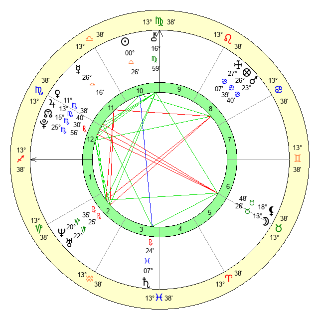 | Venus | 11 Scorpio 38 | 5 Virgo 7 | 15 Scorpio 23 |