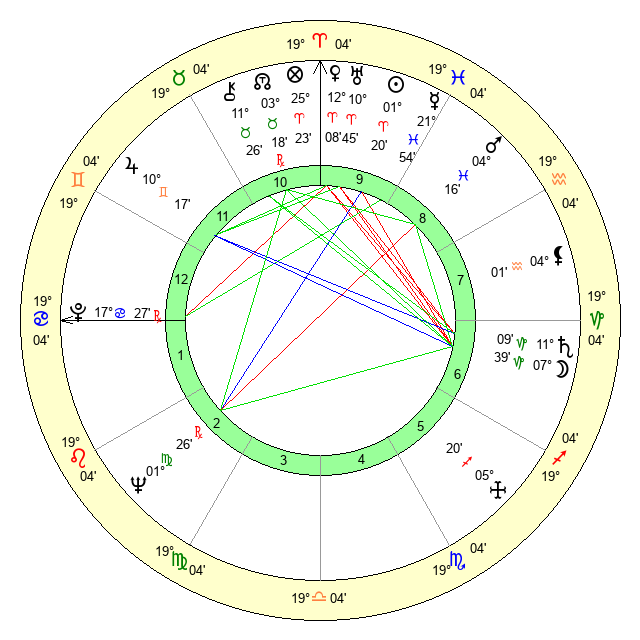 | Neptune | 1 Virgo 26 | 29 Pisces 42 | 1 Virgo 19 |