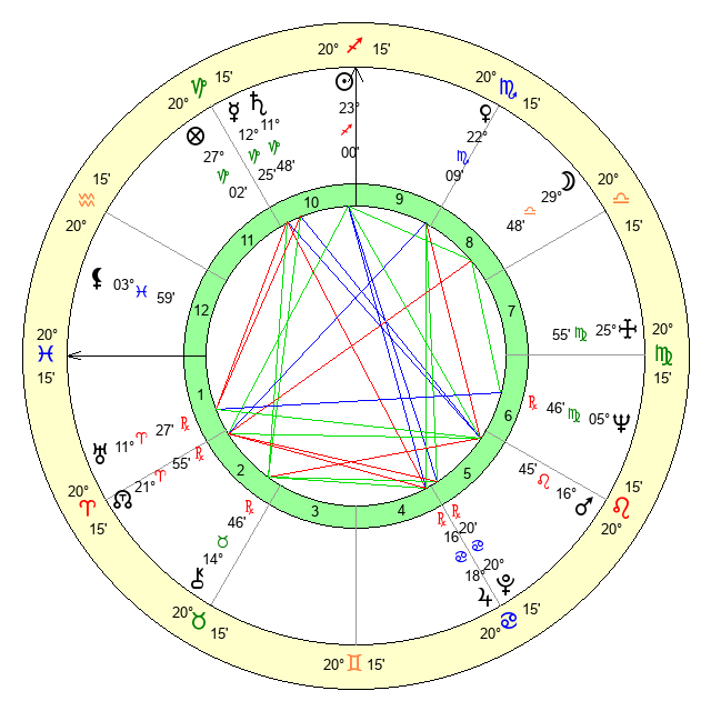 | Neptune | 5 Virgo 47 | 29 Pisces 22 | 3 Virgo 45 |