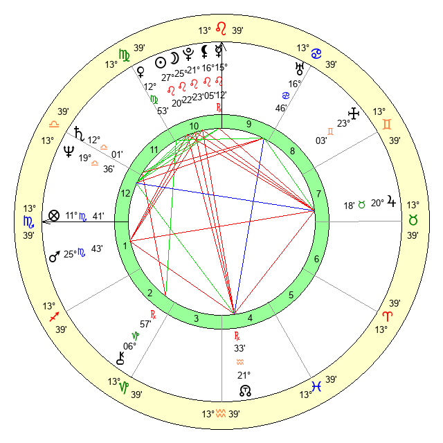 Moon | 25 Leo 26 | 22 Cancer 52 | 2 Taurus 22 |