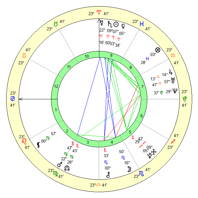 | Mars | 22 Virgo 46 | 22 Cancer 15 | 16 Virgo 47 |