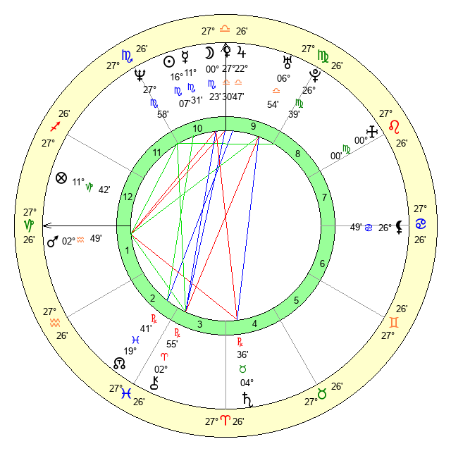 | Moon | 0 Scorpio 23 | 0 Cancer 56 | 16 Scorpio 14 |
