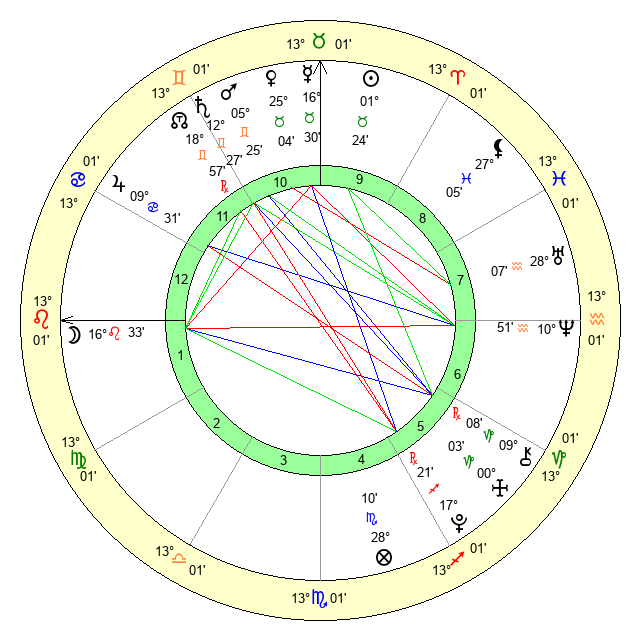 | Moon | 16 Leo 39 | 9 Aquarius 29 | 20 Gemini 9 |