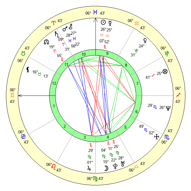 | Saturn | 9 Aries 42 | 19 Pisces 1 | 16 Aries 30 |