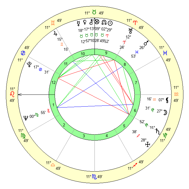 | Neptune | 0 Virgo 55 | 0 Aries 45 | 2 Virgo 8 |