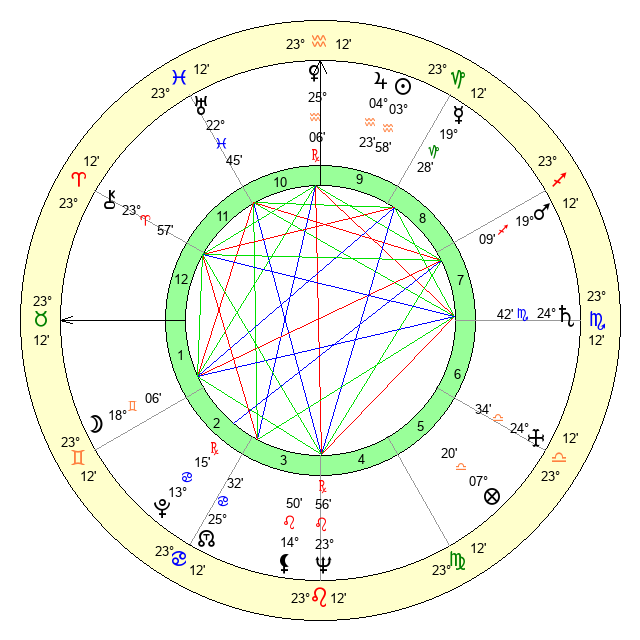 | Saturn | 25 Scorpio 11 | 16 Pisces 35 | 24 Scorpio 6 |