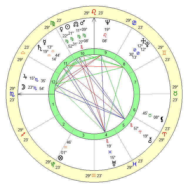| Venus | 22 Virgo 52 | 24 Leo 59 | 0 Aquarius 6 |
