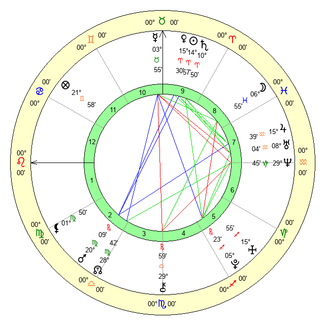 | Mars | 20 Virgo 8 | 24 Cancer 51 | 16 Virgo 52 |