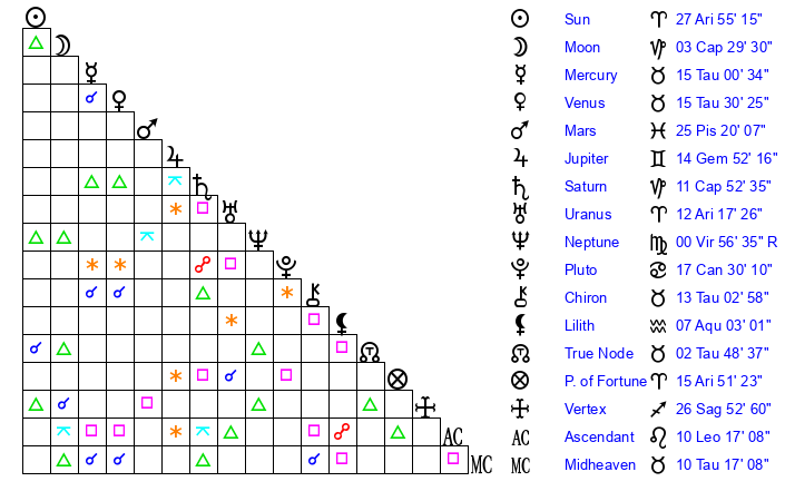 | Uranus | 12 Aries 17 | 25 Taurus 39 | 15 Aries 21 |