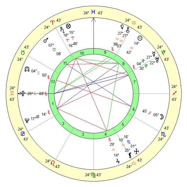 | Venus | 27 Aquarius 39 | 0 Aries 3 | 25 Aries 16 |
