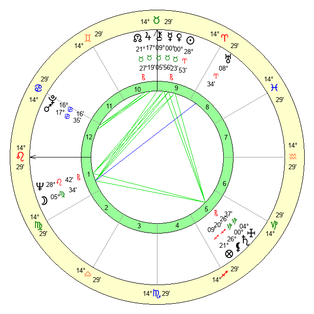 | Sun | 28 Aries 54 | 29 Aries 38 | 1 Leo 2 |
