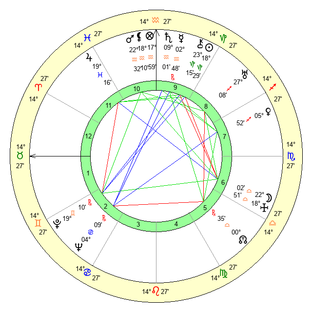 | Uranus | 27 Sagittarius 5 | 23 Taurus 27 | 29 Sagittarius 23 |