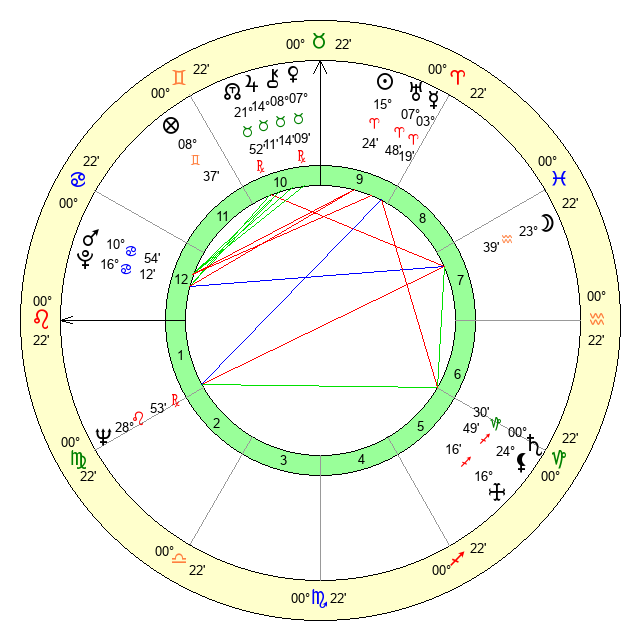 | Neptune | 28 Leo 54 | 0 Aries 14 | 29 Leo 34 |