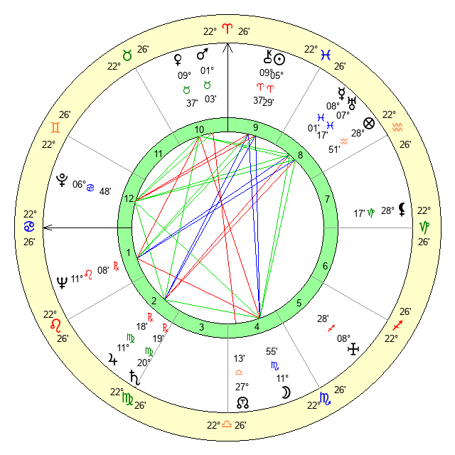 | Sun | 5 Aries 30 | 6 Aries 17 | 15 Cancer 57 |