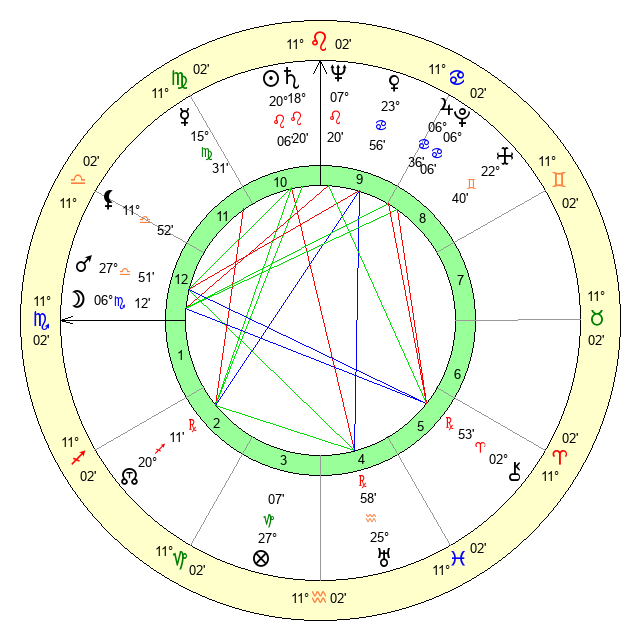 | Mercury | 15 Virgo 30 | 4 Leo 35 | 26 Sagittarius 58 |