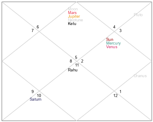 | Moon | 13 Virgo 11 | 24 Leo 48 | 5 Aquarius 54 |