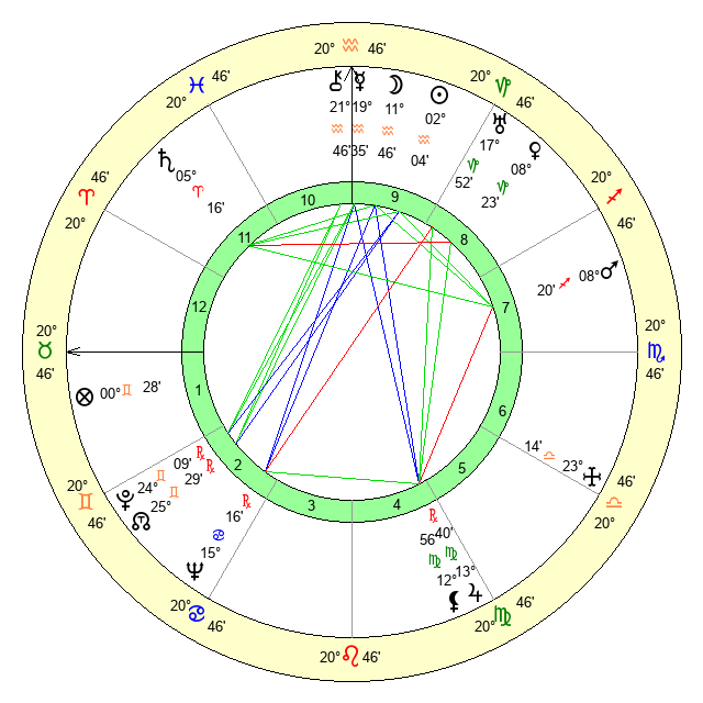 | Saturn | 5 Aries 46 | 16 Pisces 23 | 18 Aries 57 |