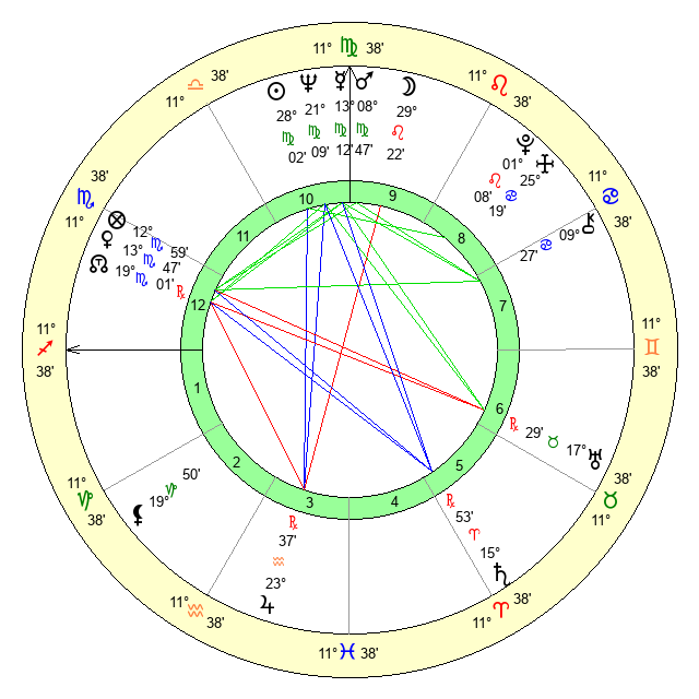 | Moon | 29 Leo 19 | 27 Virgo 27 | 9 Scorpio 20 |