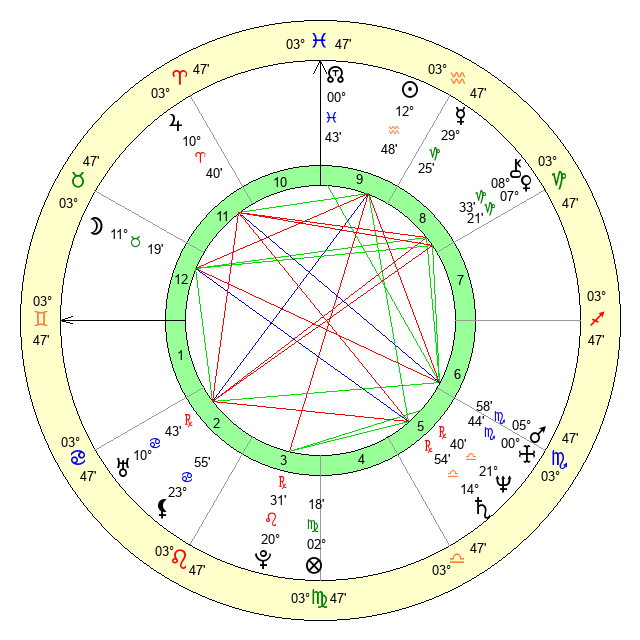 | Sun | 12 Aquarius 48 | 14 Aquarius 6 | 25 Aries 39 |